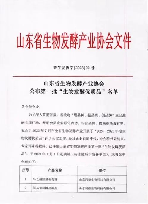 發(fā)布時(shí)間:[2023-12-28 17:28:7] 瀏覽量:3642次為了深入貫徹省委、省政府“增品種、提品質(zhì)、創(chuàng )品牌”三品戰略專(zhuān)項行動(dòng),山東省生物發(fā)酵產(chǎn)業(yè)協(xié)會(huì )開(kāi)展了“2024-2025年度生物發(fā)酵優(yōu)質(zhì)品”評價(jià)認定工作。能夠參與申報的企業(yè)必須是正常運營(yíng)3年以上,擁有自主品牌且知名度高,研發(fā)創(chuàng )新能力強,產(chǎn)品品質(zhì)穩定,生產(chǎn)制造工藝或技術(shù)達到國內先進(jìn)水平,建立了安全生產(chǎn)追溯體系。在此基礎上篩選出第一批“生物發(fā)酵優(yōu)質(zhì)品”名單,共有3家企業(yè)的6類(lèi)產(chǎn)品符合要求。