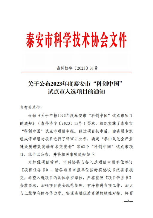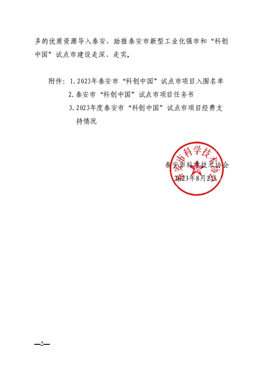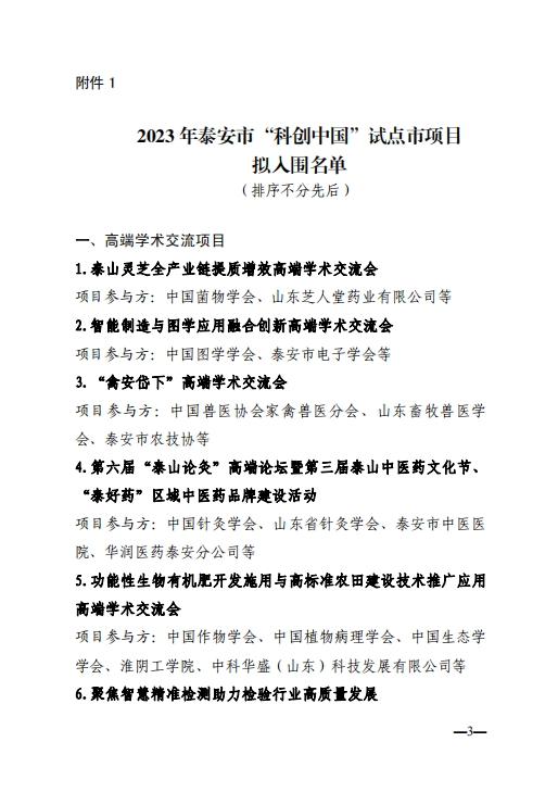 附:2023年泰安市“科創(chuàng )中國”試點(diǎn)市項目擬入圍名單
