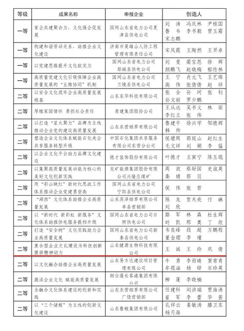山東健源生物科技有限公司報送的《復合型企業(yè)文化建設為科技創(chuàng )新提供精神動(dòng)力》企業(yè)文化建設成果榮獲二等獎。