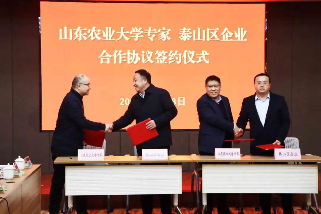 董事長(cháng)王誠(右一)與山東農業(yè)大學(xué)專(zhuān)家簽訂合作協(xié)議
