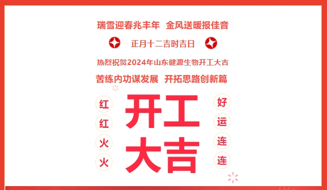 苦練內功謀發(fā)展,開(kāi)拓思路創(chuàng )新篇!嶄新的2024已經(jīng)拉開(kāi)帷幕,2024年2月21日(農歷正月十二),健源生物全體員工歡聚一堂,隆重舉行2024年山東健源生物科技有限公司開(kāi)工典禮。