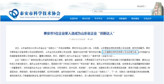 山東健源生物董事長(cháng)王誠榮獲2022山東省企業(yè)“創(chuàng )新達人”稱(chēng)號