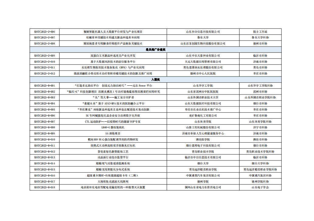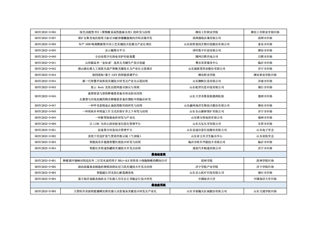 山東省第七屆科技工作者創(chuàng )新大賽獲獎名單