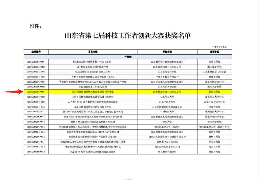 健源生物項目榮獲山東省第七屆科技工作者創(chuàng )新大賽一等獎