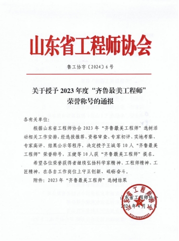王誠董事長(cháng)榮獲2023年度“齊魯最美工程師”榮譽(yù)稱(chēng)號